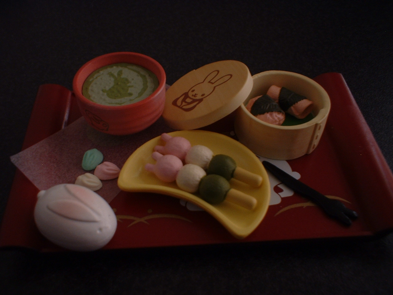 写真は欲しがってた『和うさぎの甘味屋さん』のもっちりお団子セットです。